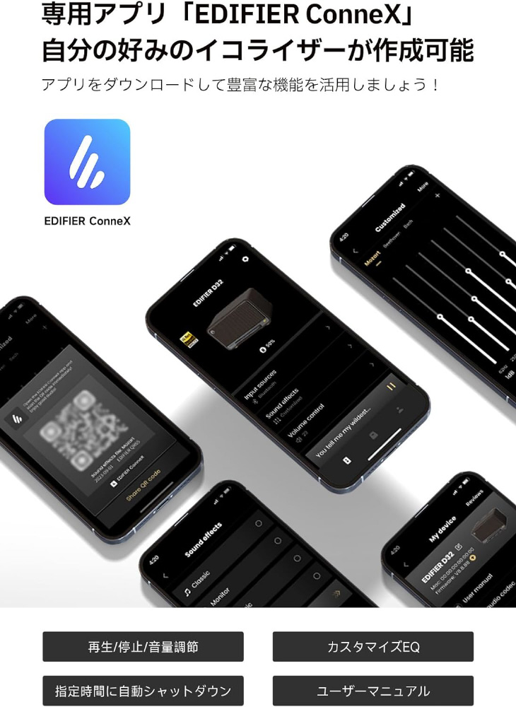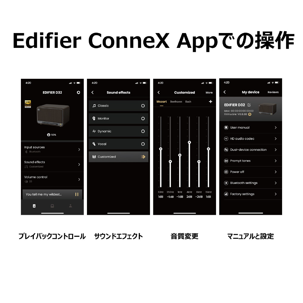 ◆【3Way接続】USB/3.5mmステレオミニ/Bluetooth(マルチポイント対応)/【EQカスタマイズ】専用アプリ「EDIFIER ConneX」を利用して、自分の好みのイコライザーが作成可能。