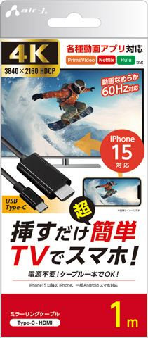 | 商品名 | ミラーリングケーブルHDMI to Type-C 60Hz 1m AHDC1M |