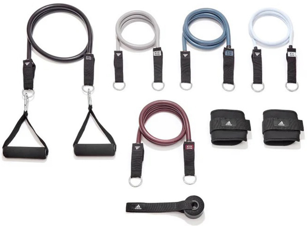 5本のチューブを組み合わせることで抵抗重量が5〜75kgまでのトレーニングが可能。
