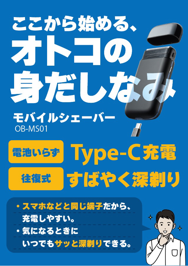 モバイルシェーバー【USB Type-C 充電】 ブラック OB-MS01 [2枚刃]