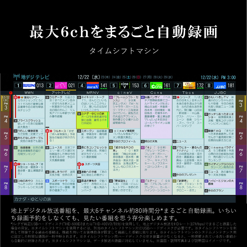 テレビをつけたときや、チャンネルを変えたとき。面白そうな番組にであったら、ボタンひとつですぐに番組の最初から見ることができます。