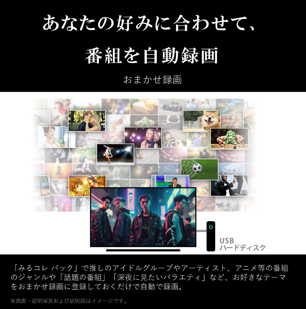 | 付属品 | リモコン1個/単四形乾電池2個/電源コード1本/転倒防止用バンド2本、転倒防止用ネジ(短)2本・ネジ(長) 2本/ 取扱説明書1部 / スタンド取付説明書1部 / レグザメンバーズ登録チラシ1部 |