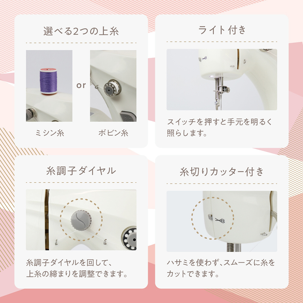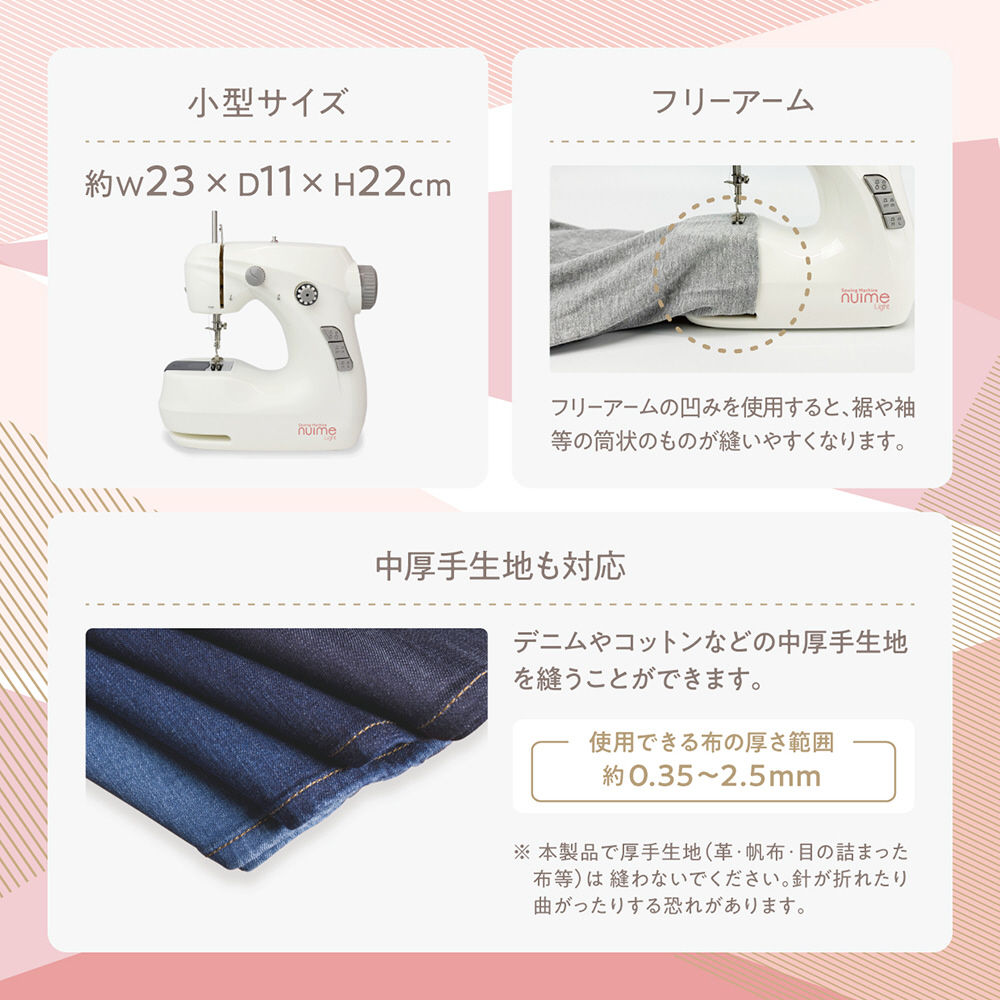 シンプル機能の小型ミシンヌイミーライト