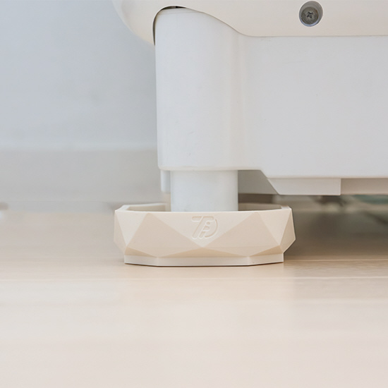 ゴム特有の防振性で、床に伝わる洗濯機の振動を20〜40%軽減。