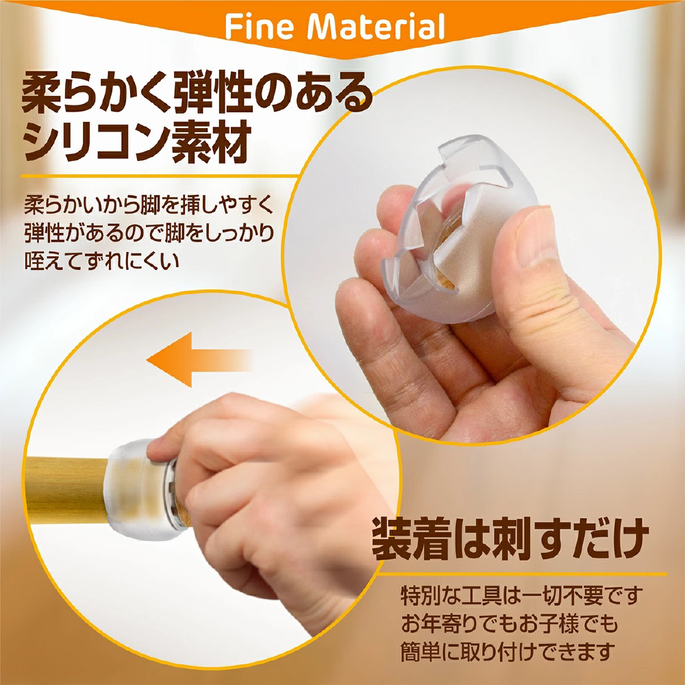 丈夫なシリコン製素材なので装着も簡単です。色も透明なため、家具のデザインを損なうことなくご使用いただけます。