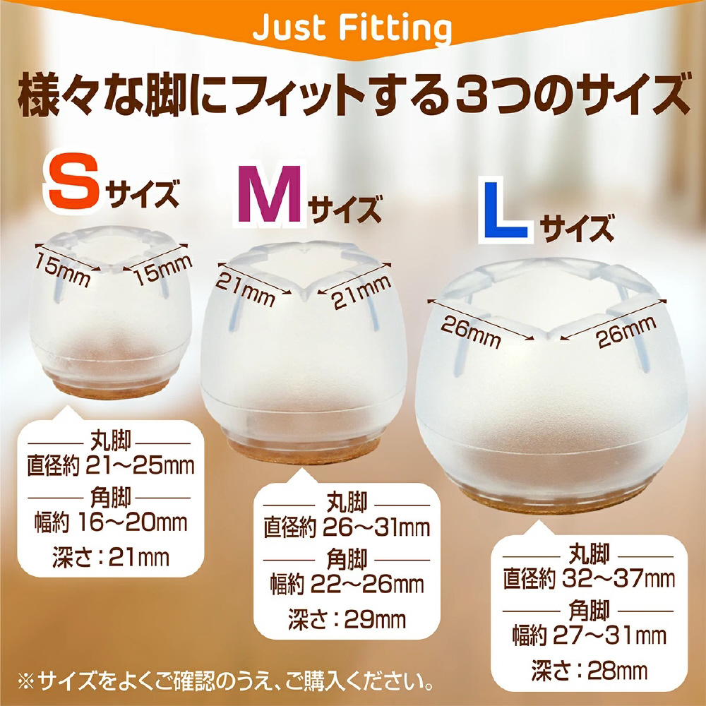 ●適用サイズ(約):丸脚-直径21〜25mm・角脚-16〜20mm/深さ-21mm