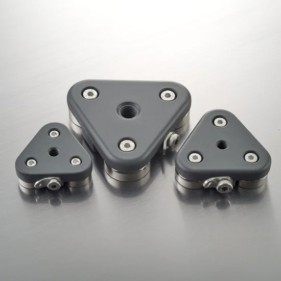 磁石を使用して、冷蔵庫や金属製の壁にカメラやライトなどの取り付けができるプレートです。マグネットプレートには一つのマグネットではなく三角形の角にそれぞれ一つずつ、合計三つのマグネットを使用しています。
