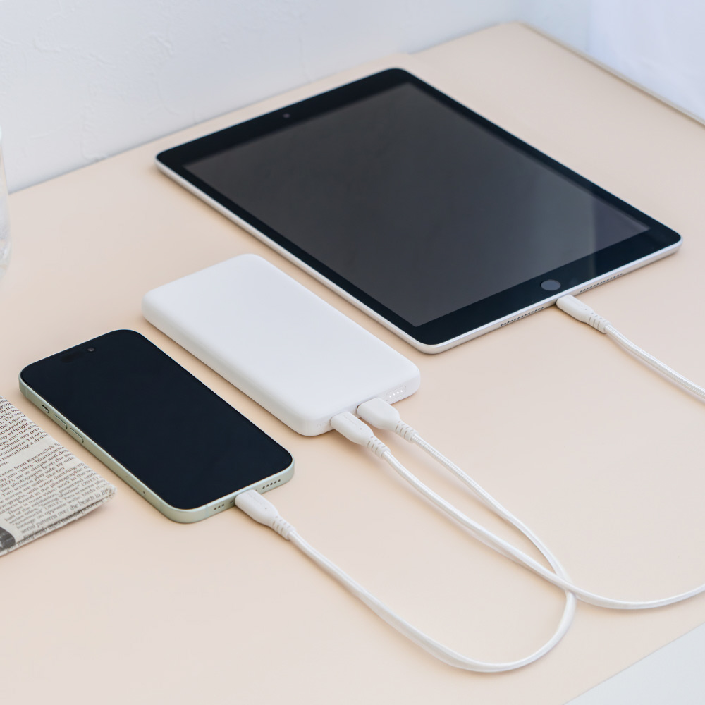 モバイルバッテリー 10000mAh USB Type-C入出力/USB Type-A出力 厚さ14.2mm 最大15W出力