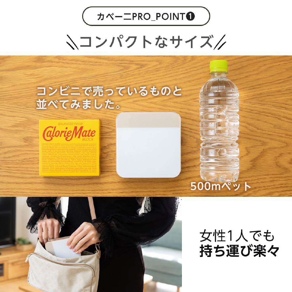 動作確認済み機種:CHE-106、BI-B62、X-30 PRO、BTL-RDC26 モバイルバッテリーに付属のUSB-Cケーブルでつなぎます。コンセントに縛られずに好きなところに移動できる!