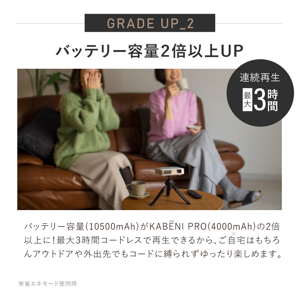 連続稼働時間 :明るいモード(2時間) - 標準モード(2.5時間) - 省エネモード(3時間)