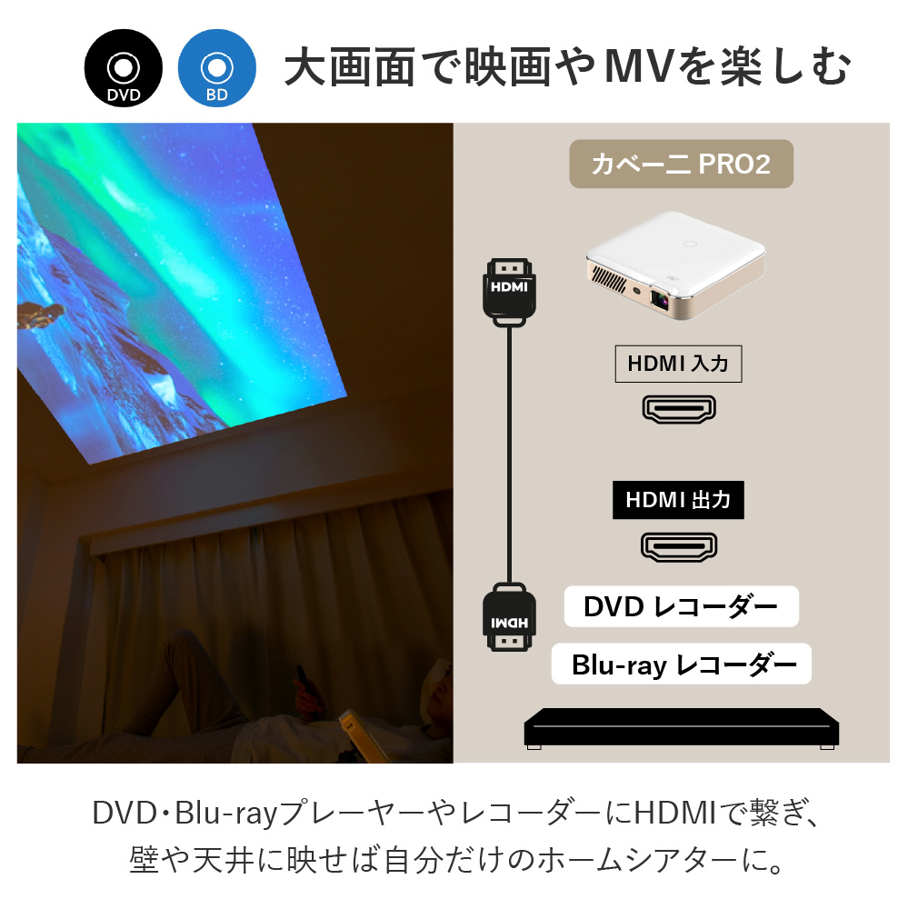 ゲーム機器やパソコンの画面を壁や天井に投影できます。Nintendo Switch(ニンテンドースイッチ)やPS3-5をつないで迫力の大画面でプレイ!