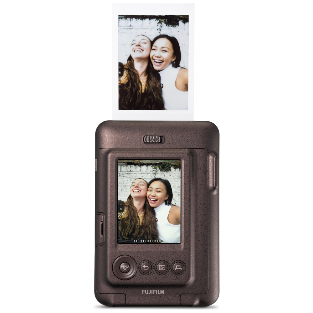 デジタル技術を搭載し、携帯性に優れたハイブリッドインスタントカメラです。カメラ背面に2.7インチのLCDモニターを搭載。画面を見ながら撮影し、好きな画像を選んでプリントすることができます。撮影時には、露出補正による明るさ調整機能や、セピア調やモノクロ調などに写真を加工できる6種類のフィルター機能を活用することによって写真の印象を変えることができます。