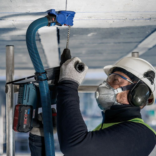 ■高い集じん効率で作業者の健康を守ります(アダプター未使用時に比べ粉塵量約1/25)。