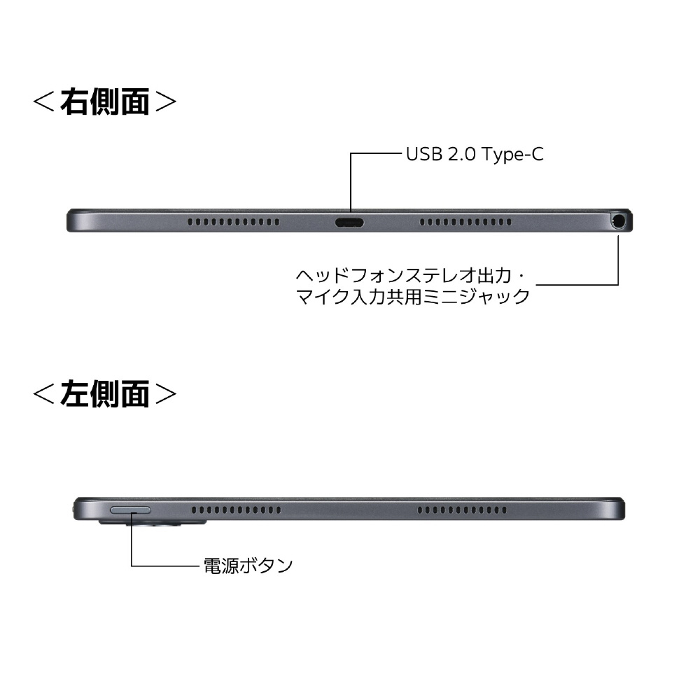 | インターフェイス | USB:USB 2.0 Type-C×1(クライアント機能、OTG対応、充電兼用) 音声入出力端子:ヘッドフォンステレオ出力・マイク入力共用ミニジャック×1 外部メモリ:microSDメモリーカード |