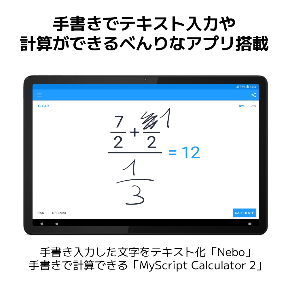 タブレットをパソコンのセカンドモニタとして利用できる*「つながる! LAVIE」や、手書きで計算できる「MyScript Calculator 2」など多彩なアプリを搭載しています。