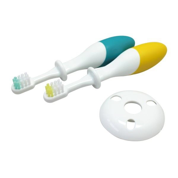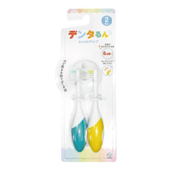 AL-TBFU-2P デンタるん ふっくらグリップ(ベビー歯ブラシ)6ヵ月〜 2本組 グリーン×イエロー