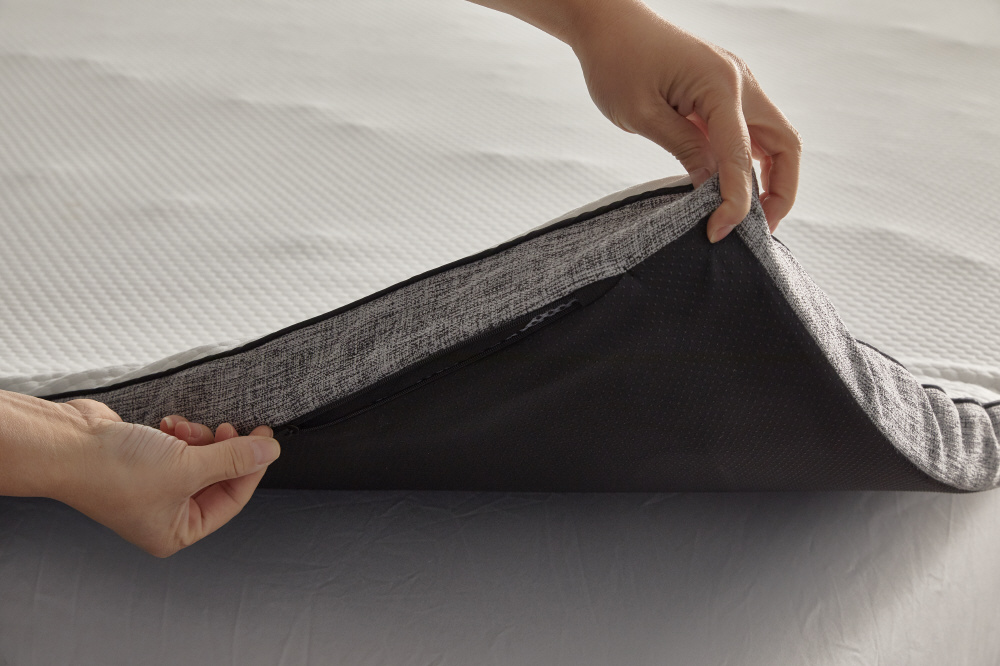 側生地はファスナーで簡単に取り外してお洗濯いただけます。