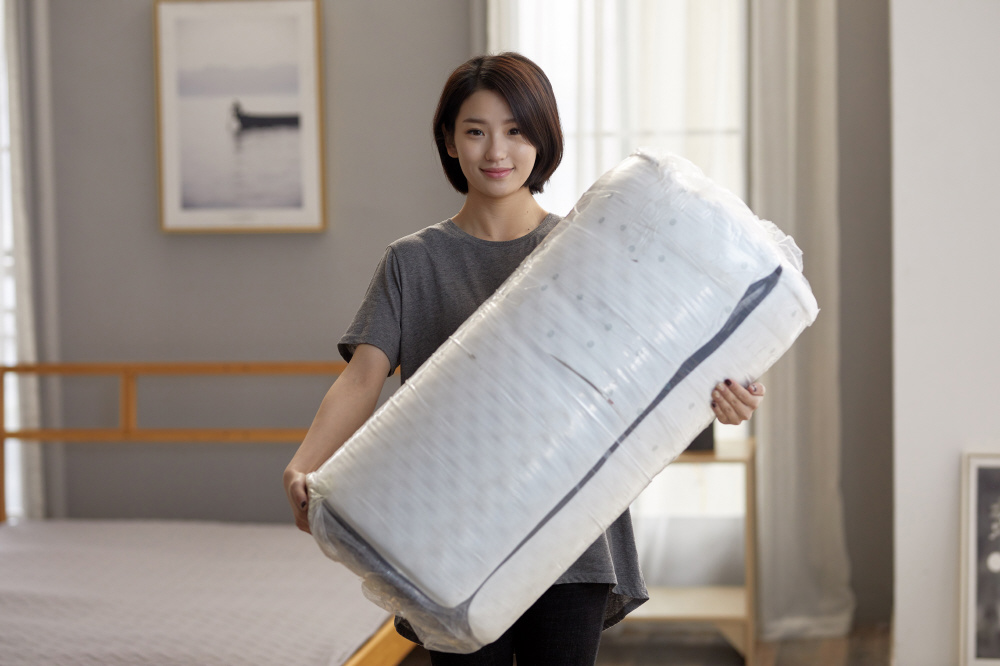 圧縮したウレタンを密封ロールパックにして小さく梱包しました。シングルサイズの梱包ケースはわずか29×29×58cmです。間口、階段、通路などを気にせず手軽に設置ができます。商品は開封直後に95%まで復元し、24時間以内に99%復元します。側生地が若干乱れていることがあるので、お手数ですがお客様の手で整えてくださいますようお願いいたします。
