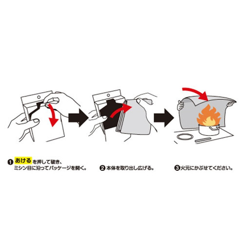 ・初期消火は消火器が絶対ですが、手元にない場合などはこのブランケットが役立ちます。