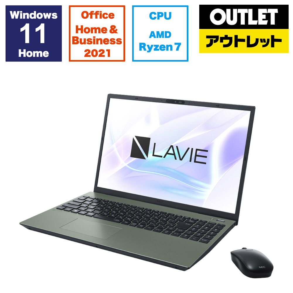 ノートPC PC-N1675HAE オリーブグリーン [16.0型 /Windows11 Home /AMD Ryzen 7 /メモリ:16GB /SSD:512GB /Office HomeandBusiness /日本語版キーボード /2024年春モデル]【外箱不良品】