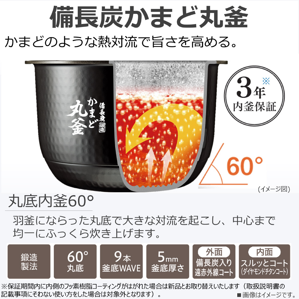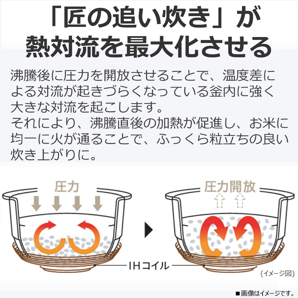 <B>「真空圧力IHジャー炊飯器」一度にたくさん炊いて1日中、ずっとおいしい。</B>