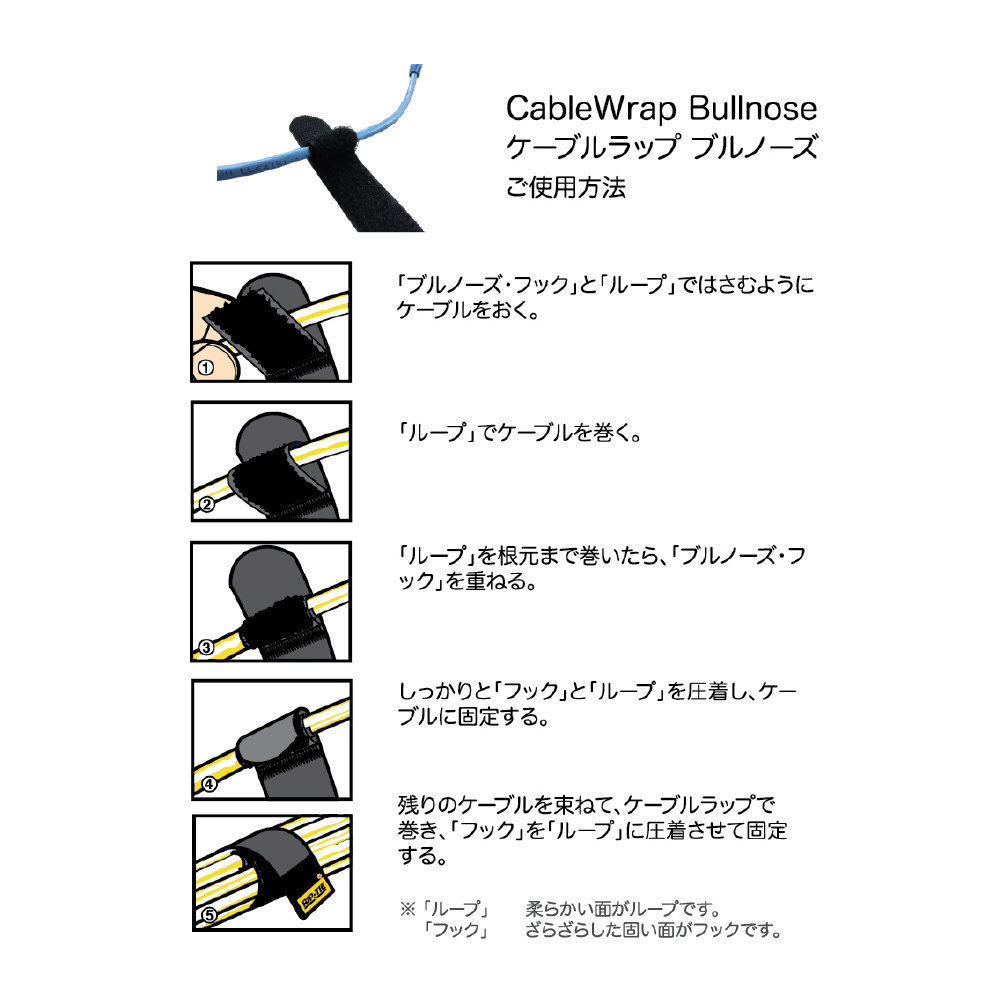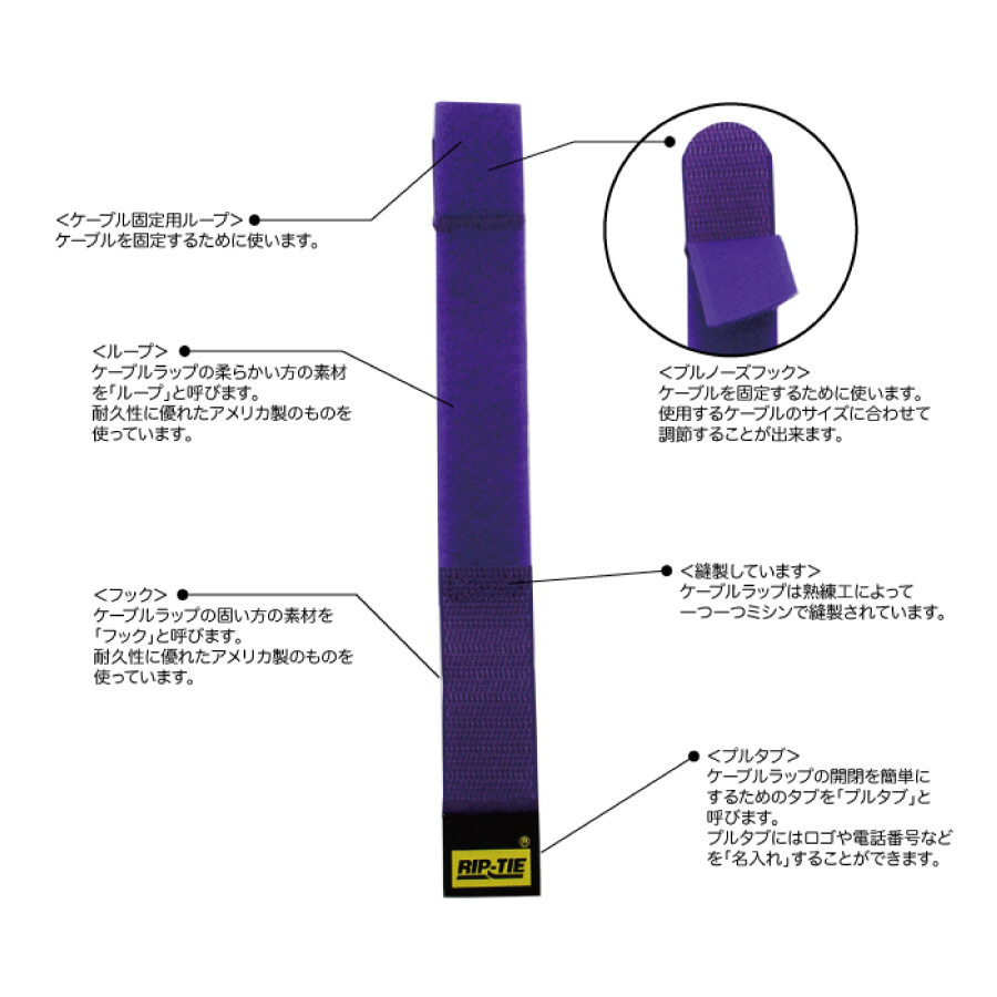 耐久使用回数は1万回以上!プロの現場で活躍するRIP-TIEのケーブルラップ。半円型フックを巻き付けケーブルに固定して使用します。サイズ、カラーバリエーションも豊富。