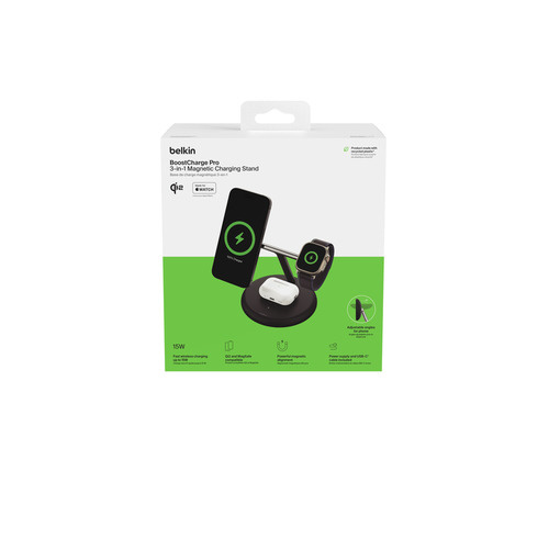 BoostCharge Pro Qi2 3-in-1 ワイヤレス充電スタンド ブラック WIZ023dqBK [USB Power Delivery対応 /3ポート]