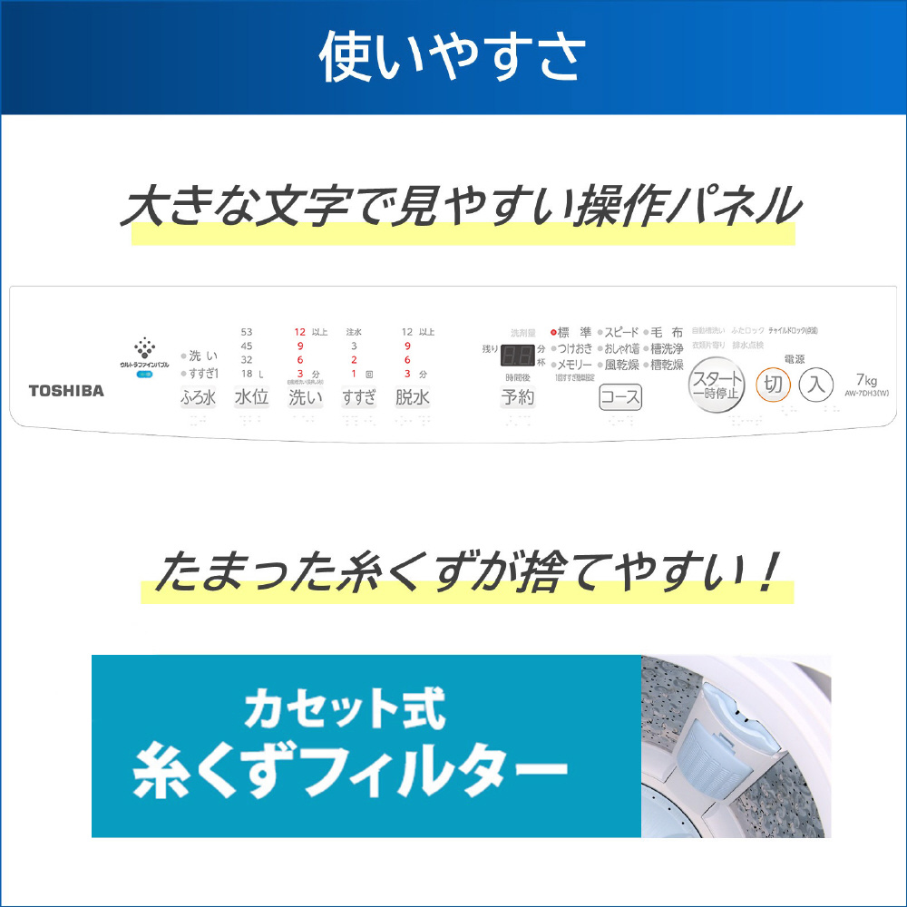 全自動洗濯機 ZABOON(ザブーン) ピュアホワイト AW-7DH3(W) [洗濯7.0kg /簡易乾燥(送風機能) /上開き]【生産完了品】