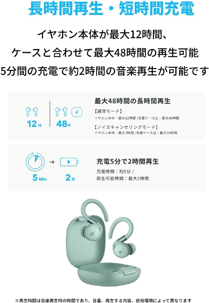 完全ワイヤレスイヤホン Soundcore Sport X20 ミントグリーン A3968Z61 [ワイヤレス(左右分離) /ノイズキャンセリング対応 /Bluetooth対応]