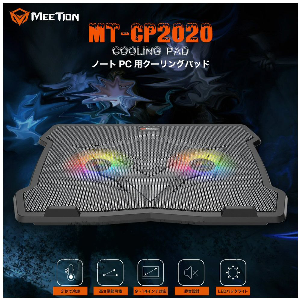 ノートパソコンクーラースタンド [9〜14インチ /USB-A接続] LEDバックライト・冷却ファン・USB-Aハブ搭載 ブラック CP2020