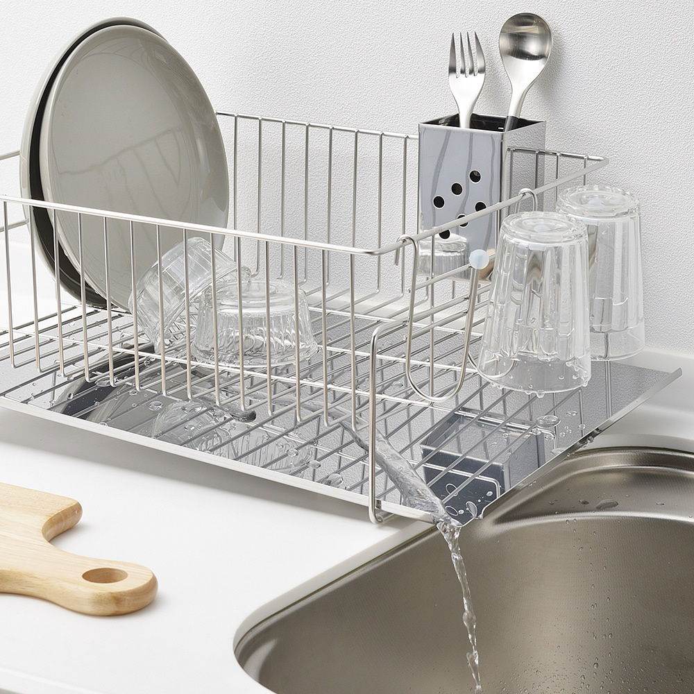 水切りラック ステンレス 左置き 斜めに流れる 箸立て コップホルダー sumahapi 7293B