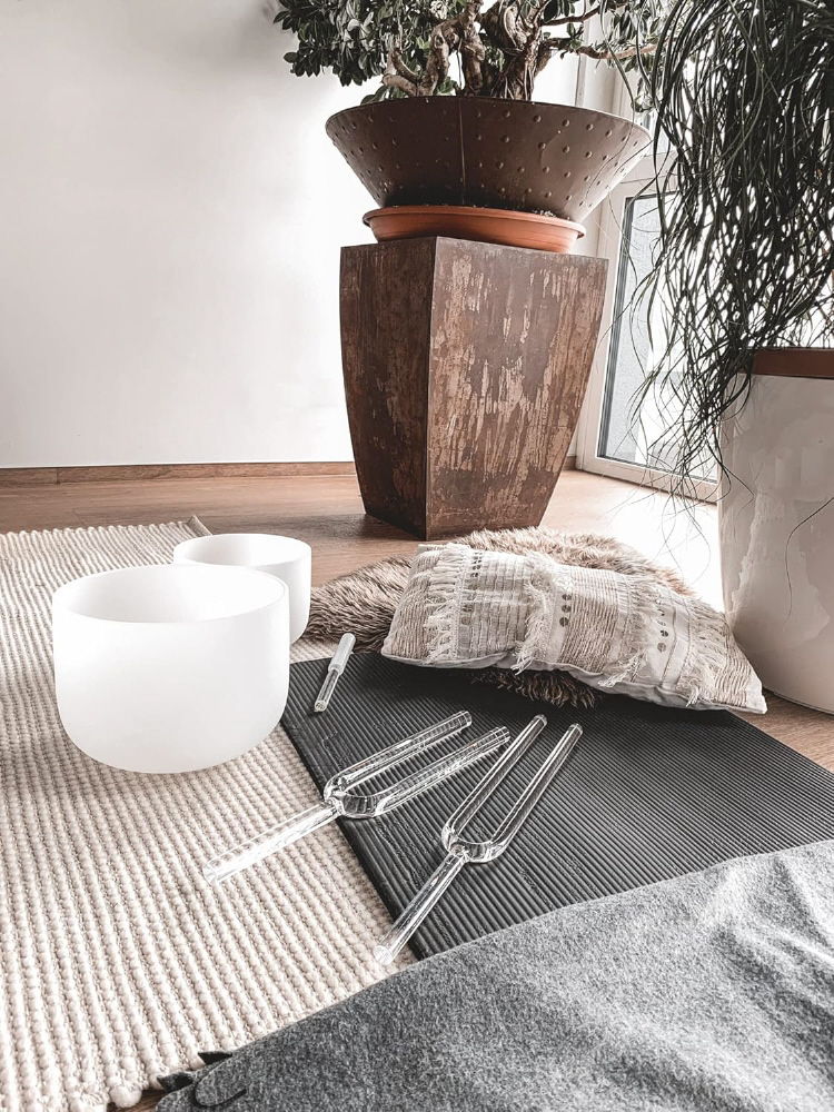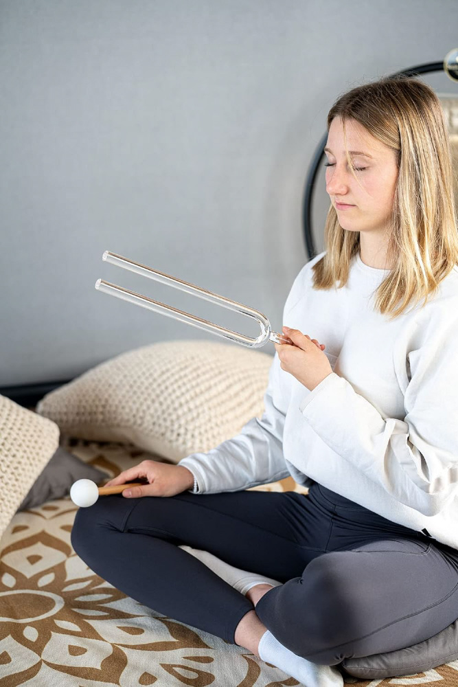 ・瞑想やヨガ、リラクゼーション用にぴったりの水晶製チューニングフォーク