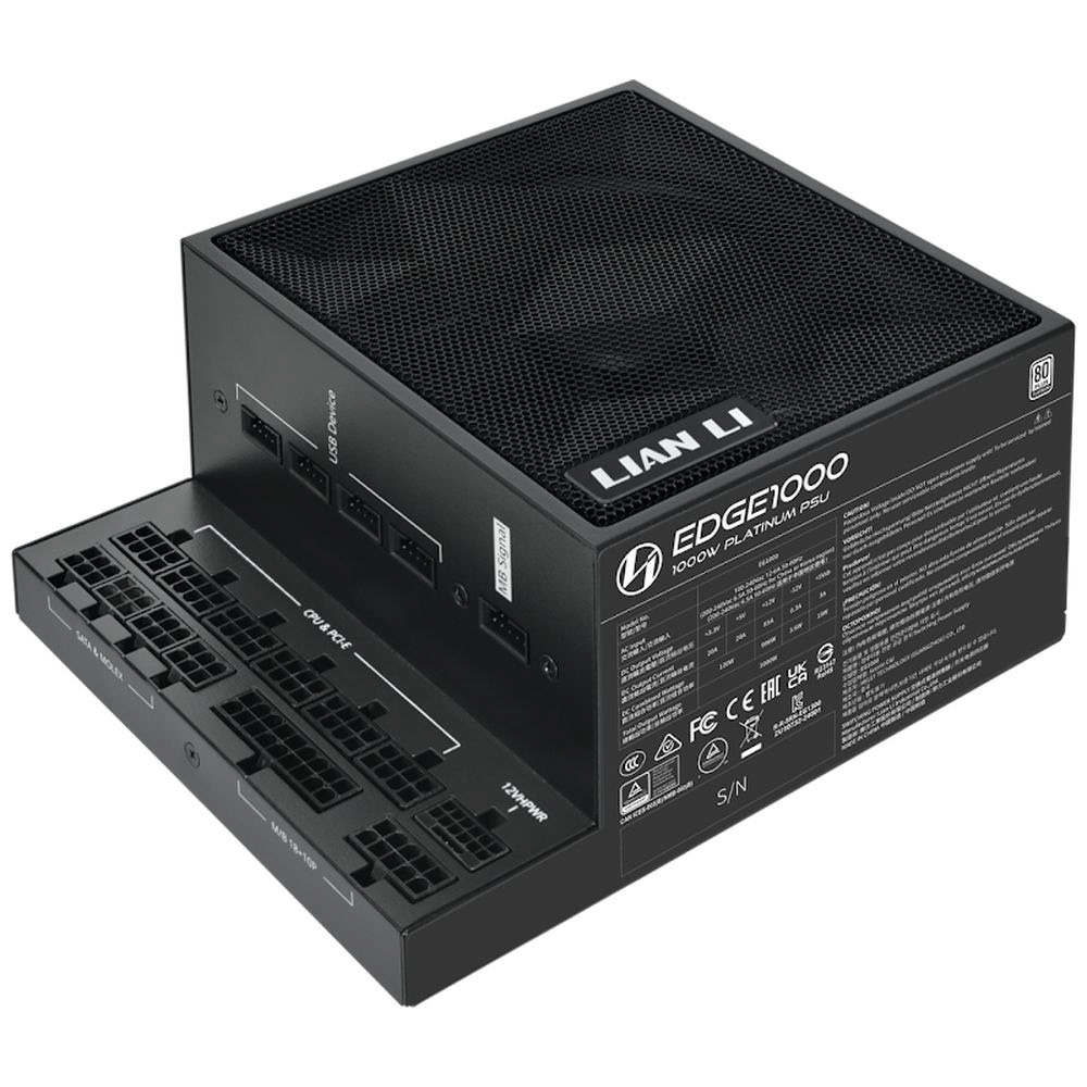 「EDGE」シリーズは、L-shapeデザインを採用したユニークな外観の80PLUS Platinum認証フルモジュラーATX電源です。この革新的なデザインはLIAN LI社を代表するPCケース「O11」シリーズのようなデュアルチャンバー構造のPCケース専用に設計されています。