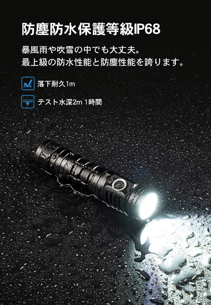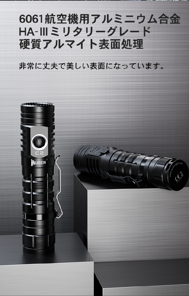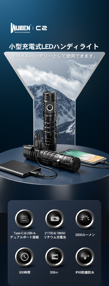 | 商品名 | 小型トーチライト 2000lm C2-WU [LED /充電式 /防水対応] |