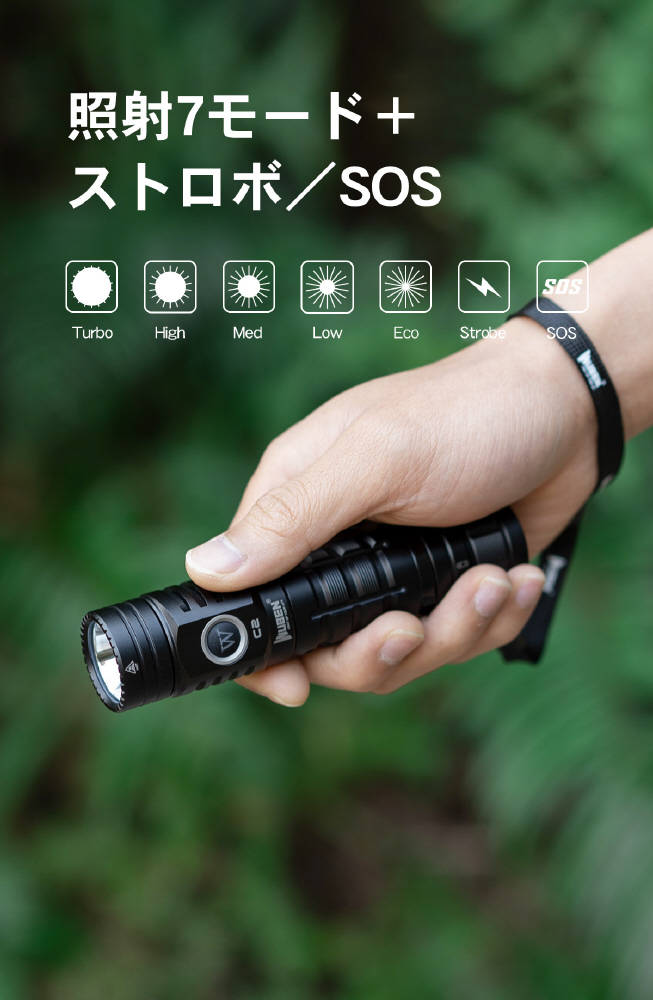 小型トーチライト 2000lm C2-WU [LED /充電式 /防水対応]