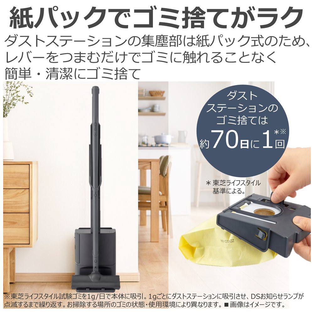 TOSHIBA(東芝) ダストステーション搭載コードレスクリーナー アッシュブラック VC-SL130DS-K [サイクロン式]