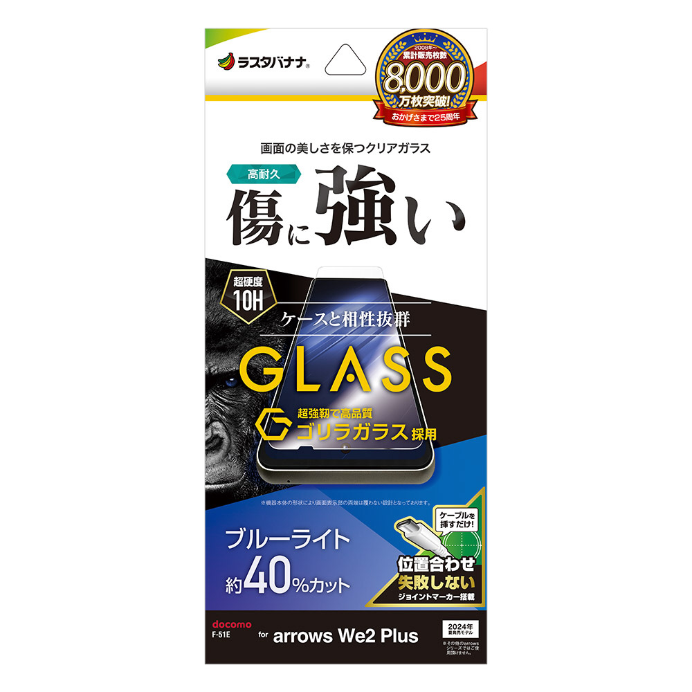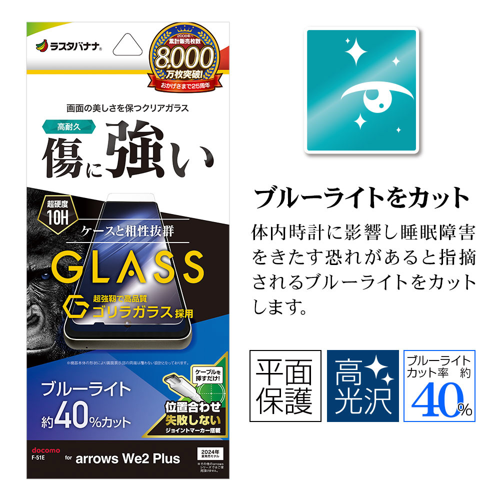 商品名 arrows We2 Plus ゴリラガラスフィルム ブルーライトカット 高光沢 0.33mm 位置合わせJM付き GGE4235ARWE2P 【864】
