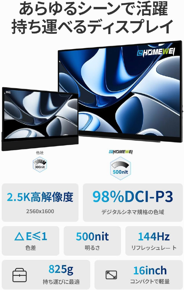 USB-C接続 モバイルモニター SPシリーズ SP-160NW [16型 /WQXGA(2560×1600) /ワイド /144Hz]