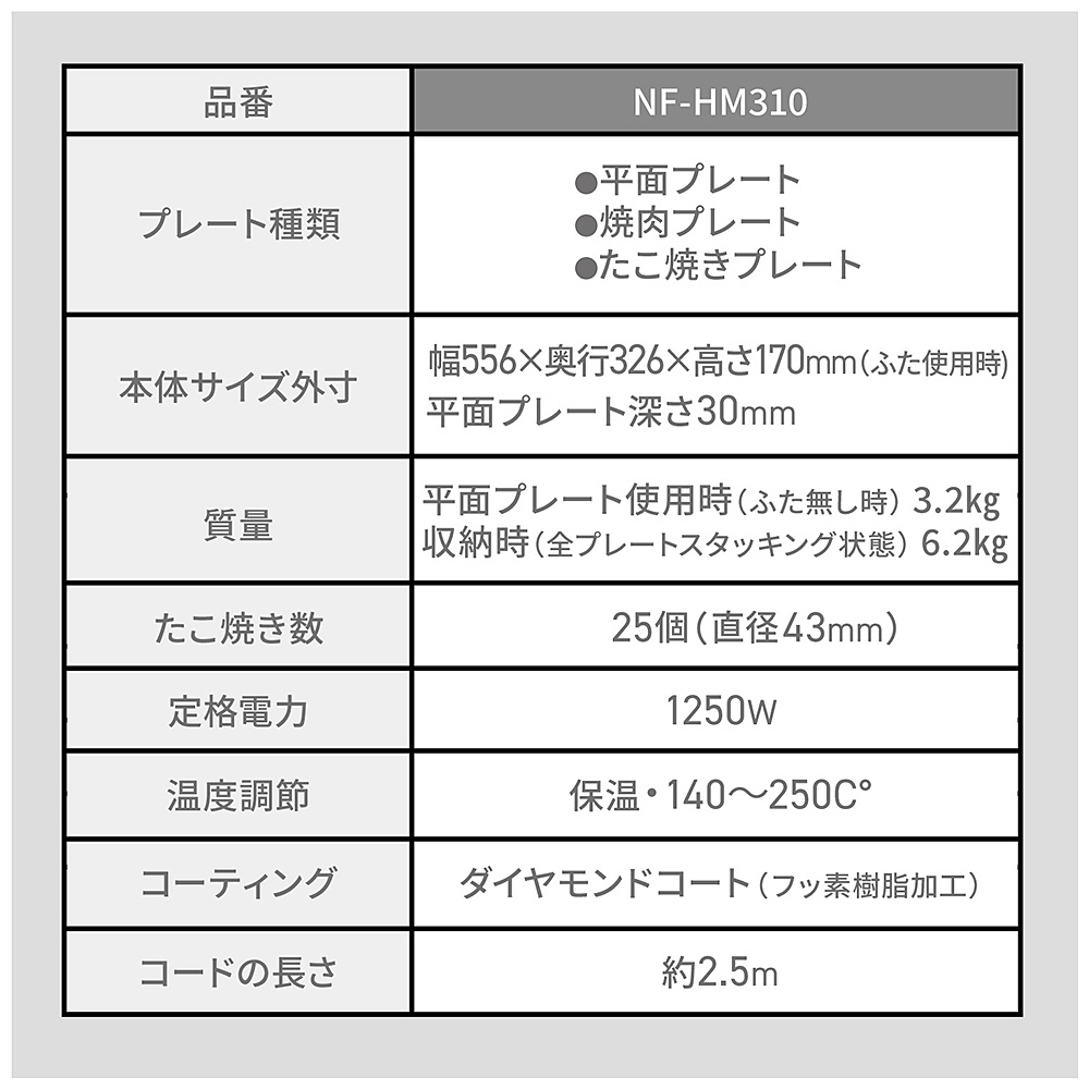 | 商品名 | ホットプレート ブラック NF-HM310-K [プレート3枚] |