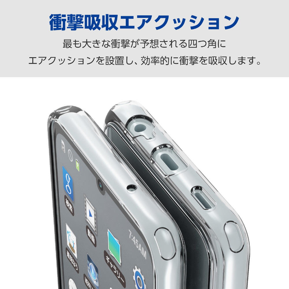 側面には弾力性のあるTPU(熱可塑性ポリウレタン)素材を、背面には強じんで透明度の高いポリカーボネート素材を使用した、スリムなスタイルのハイブリッドケースです。
