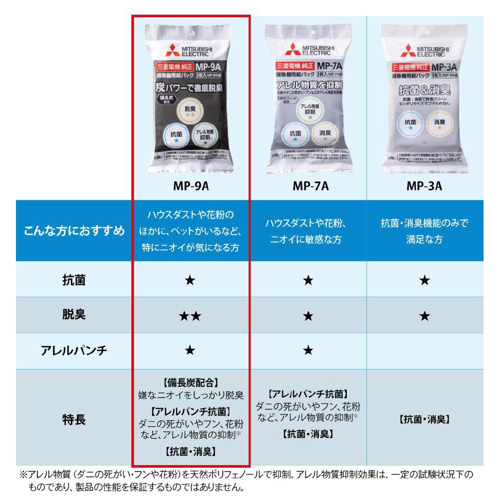| 商品名 | 掃除機用【備長炭配合】炭紙パック(3枚入) MP-9A |