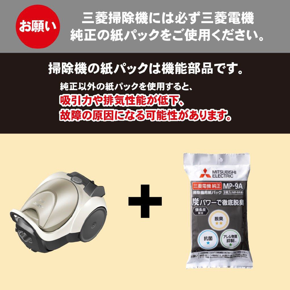 ・掃除機の紙パックは機能部品です。三菱掃除機には必ず三菱電機製の純正紙パックをご使用ください。