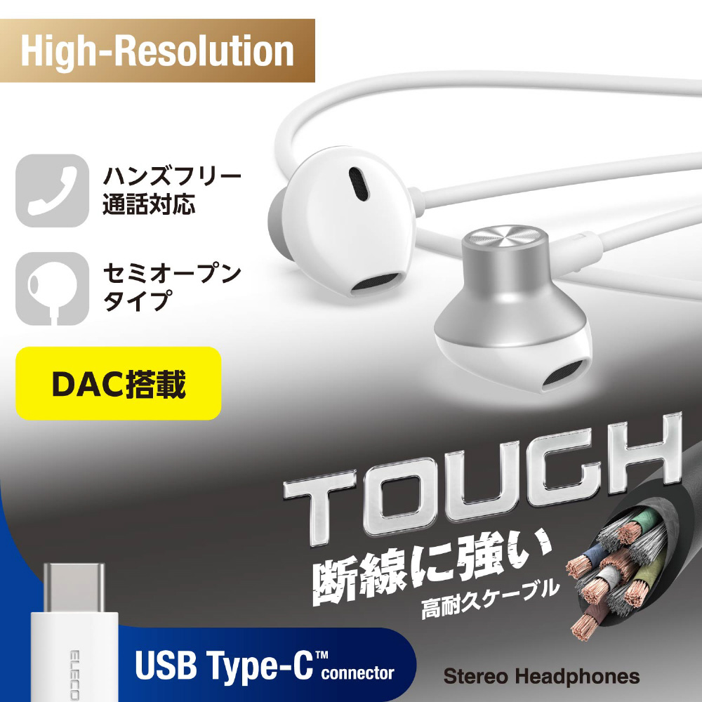 断線しにくいタフ設計!USB Type-C(TM)接続のデジタル式有線ヘッドホン(インナーイヤー型)です。人の声を聞きやすい音質調整で映画やドラマの視聴などにおすすめです。リモコンマイク付きで動画視聴中の着信にもスムーズに応答できます。