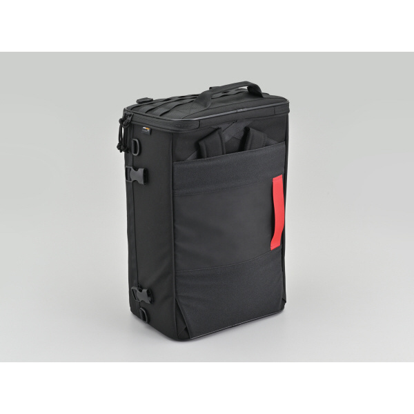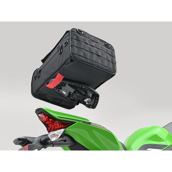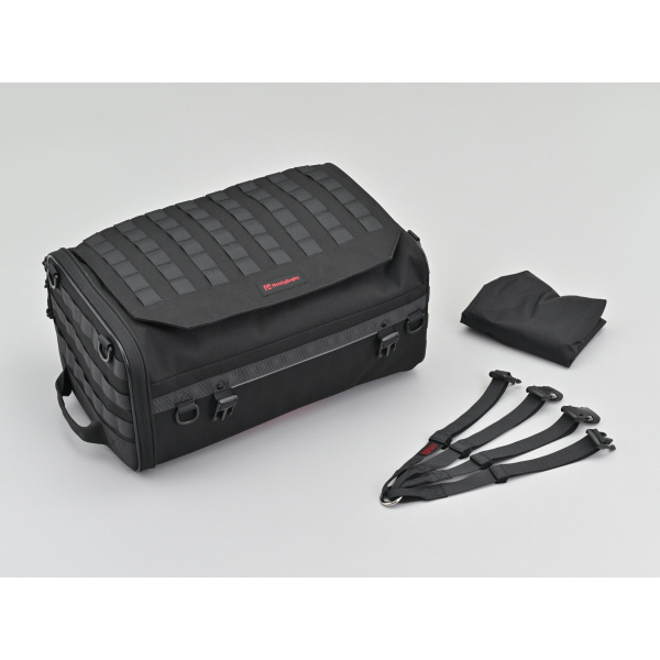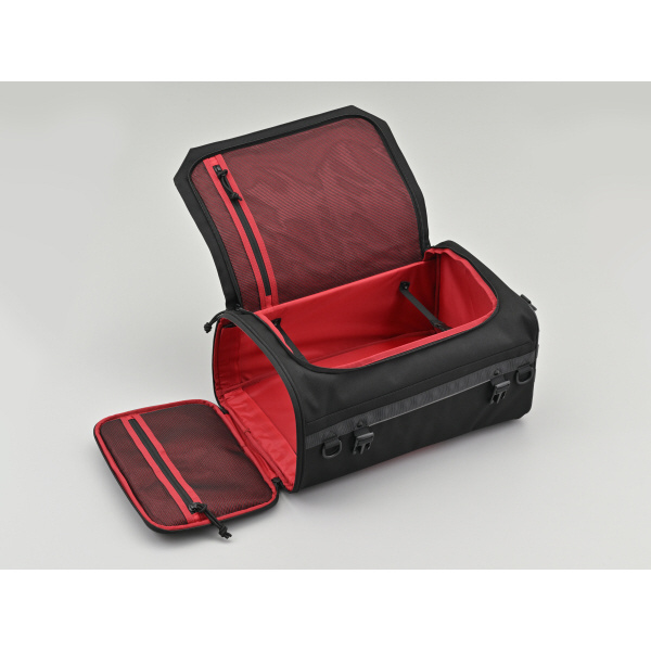 トップとサイドの2か所が大きく開くので、シートバッグとしてもバックパックとしても使いやすいと好評の2WAYシートバッグをリニューアル。