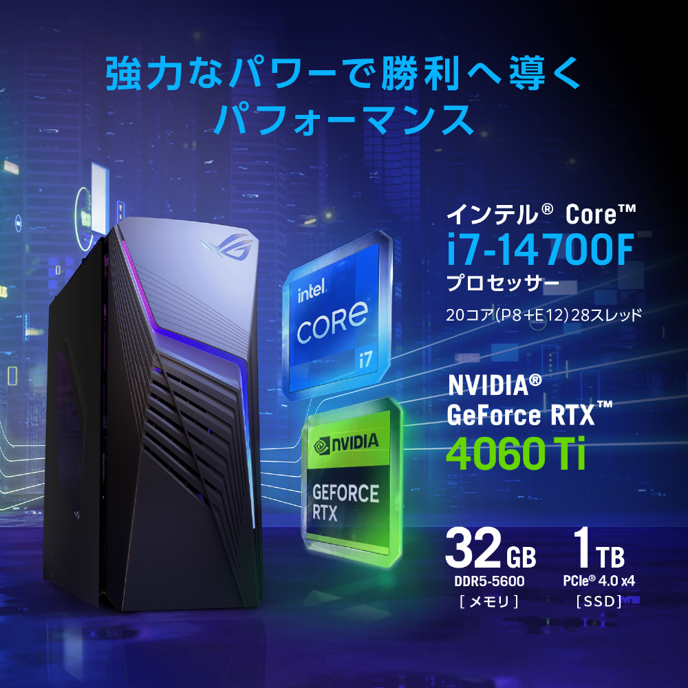 | 商品名 | G13CHR-71470F150W ゲーミングデスクトップパソコン ROG Strix G13CHR(RTX 4060 Ti) エクストリームダークグレー |