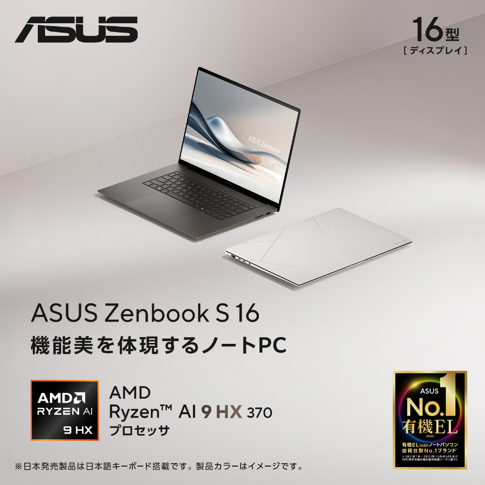 | 商品名 | ノートパソコン Zenbook S 16 (UM5606) スカンジナビアンホワイト UM5606WA-AI9321WH [16.0型 /Windows11 Home /AMD Ryzen 9 /メモリ:32GB /SSD:1TB /日本語版キーボード /2024年8月モデル] |