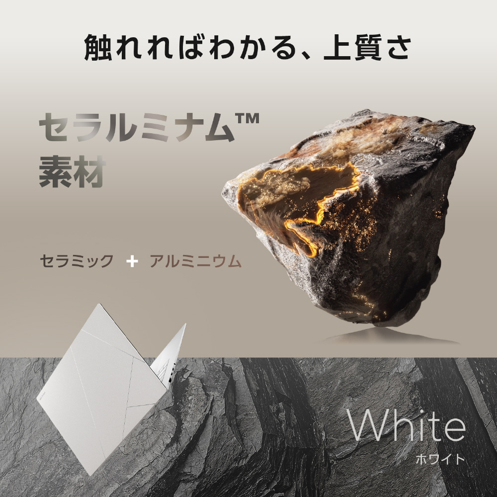 セラミックの美しい質感とアルミニウムの軽さ・堅牢性を兼ね備えた独自のセラルミナム素材を本体に採用。傷や汚れにも強く、インスピレーションを生む現代的なカラーと、CNC加工の精密な職人技が相まって、他にはないのノートPCとして長い間使用いただけます。