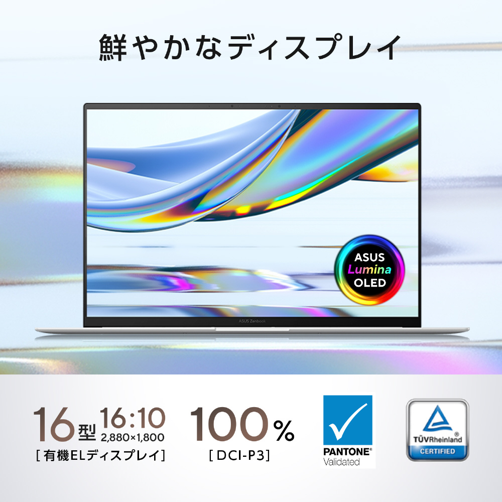 | 仕様1 | [表示機能] ディスプレイ:16.0型 OLED (有機EL) 表面仕様:グレア 解像度:2880×1800ドット (120Hz) 視野角:水平170°/垂直170° 外部ディスプレイ出力:最大7680×4320ドット ※外部ディスプレイの仕様によっては表示できない場合があります。 [センサー]顔認証対応 |