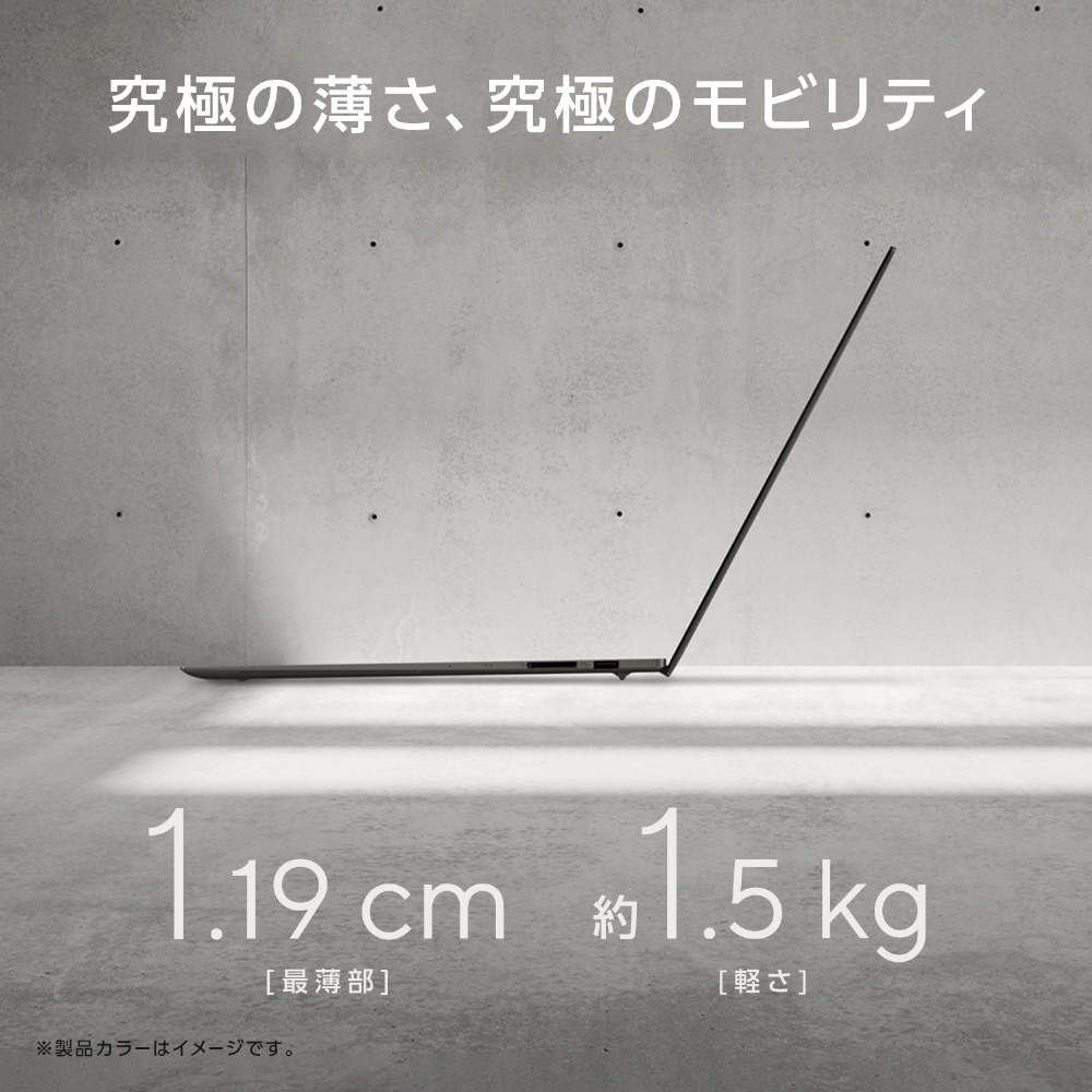 メタル製16型ノートPCでありながら、驚異の1.19cmの薄さと約1.5kgの軽さを実現。デュアルファン搭載でパフォーマンスも犠牲にすることはありません。高いモビリティ性能で、かつてない生産性と驚きをお届けします。※製品カラーはイメージです。