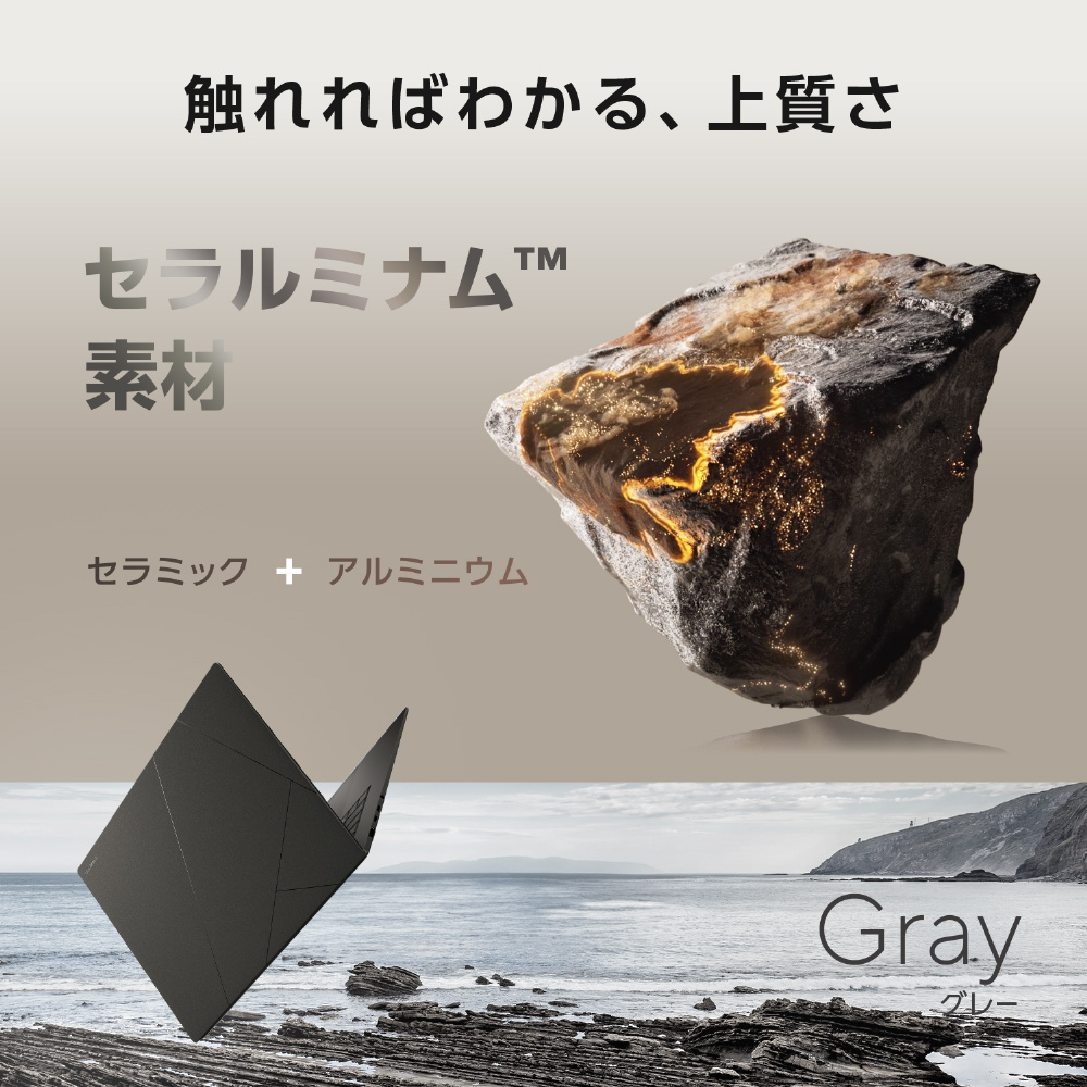 セラミックの美しい質感とアルミニウムの軽さ・堅牢性を兼ね備えた独自のセラルミナム素材を本体に採用。傷や汚れにも強く、インスピレーションを生む現代的なカラーと、CNC加工の精密な職人技が相まって、他にはないのノートPCとして長い間使用いただけます。